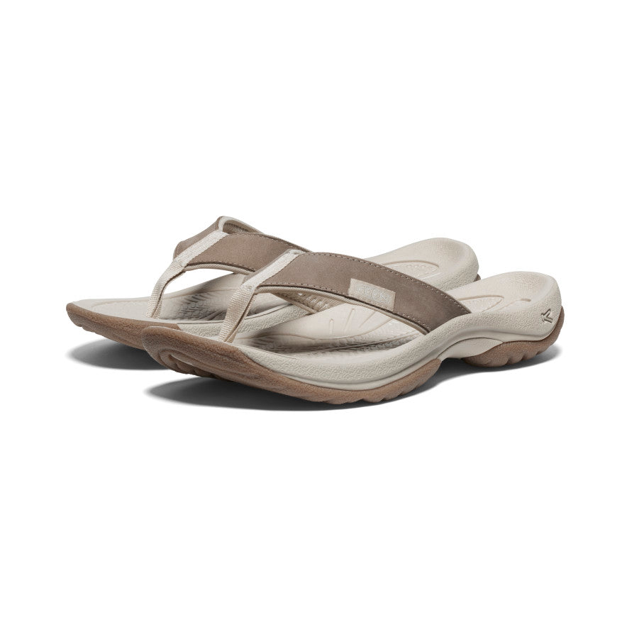 The ultimate travel flip. With more cushioning. arch support. traction for wet surfaces. and ethically sourced. waterproof leather.